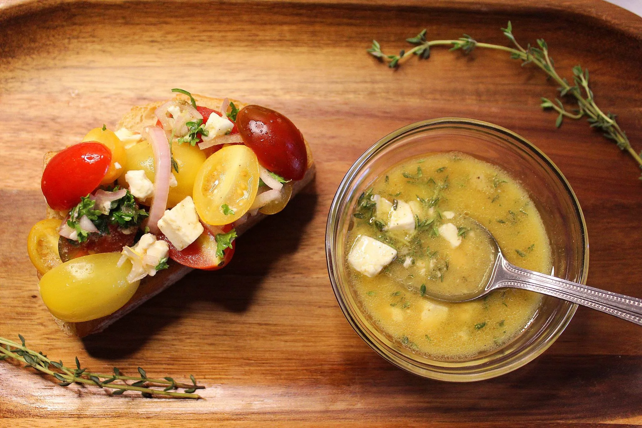 Quick Bruschetta with Lemon Feta Vinaigrette